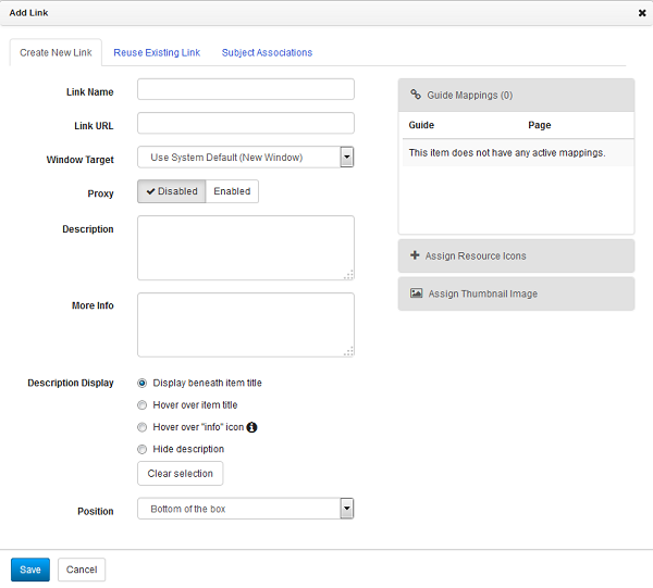 LibGuides now allows libraries to create a master list of database assets that authors can reuse to populate their guides. Database assets are managed by the administrator and exist separately from link assets. However, RUL does not currently use this feature so authors should ignore this option as no database holdings have been uploaded. Database links are currently created and managed like all other links in the system.