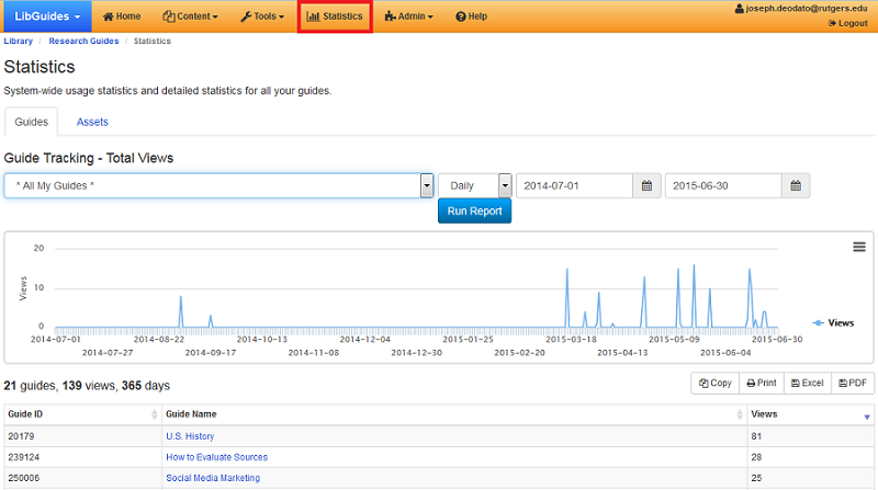 To view usage statistics for your guides: